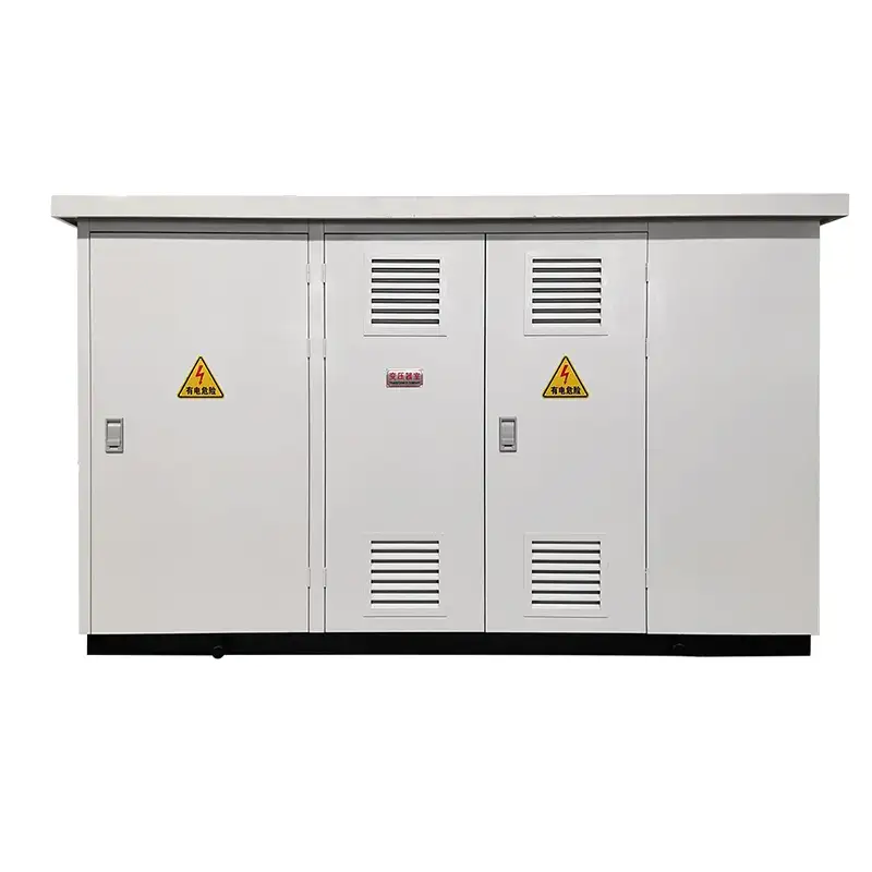 ボックスタイプの変電所は、1つ以上のボックスにしっかりとカプセル化された3つの主要なコンポーネントで構成されています:高電圧分布ユニット、トランス、低電圧分布ユニット。荷重スイッチ、真空回路ブレーカー、またはオイルレス回路ブレーカーは、高電圧側で選択でき、トランスはオイル浸漬トランスまたはエポキシ樹脂ドライタイプのトランスになります。ボックスタイプの変電所は、リングネットワーク分布システムと放射状配電端子電源システムの両方に使用できます。